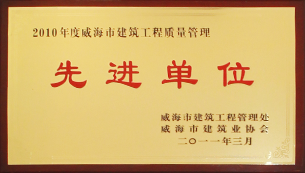 公司連續(xù)八年榮獲威海市“誠信開發(fā)企業(yè)”、“建筑施工誠信企業(yè)”,連續(xù)九年被評為威海市級“守合同重信用企業(yè)”,多次被評為威海市“市級文明單位”、“質(zhì)量管理先進企業(yè)”、 “安全管理先進企業(yè)”,乳山市“優(yōu)秀企業(yè)”、“先進民營企業(yè)”、“納稅明星企業(yè)”,在社會上逐步樹立了誠信、穩(wěn)健的企業(yè)形象。